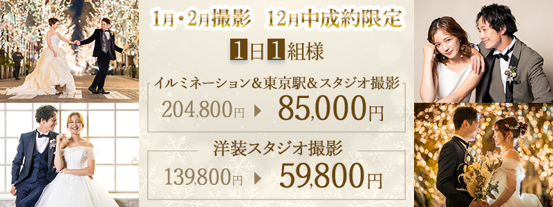 人気の東京駅周辺で幻想的な写真を撮影致します 年間1200組以上の撮影実績 スタジオは東京駅まで10分の好立地 データ確認して気に入らなければ撮影代金は返金致します