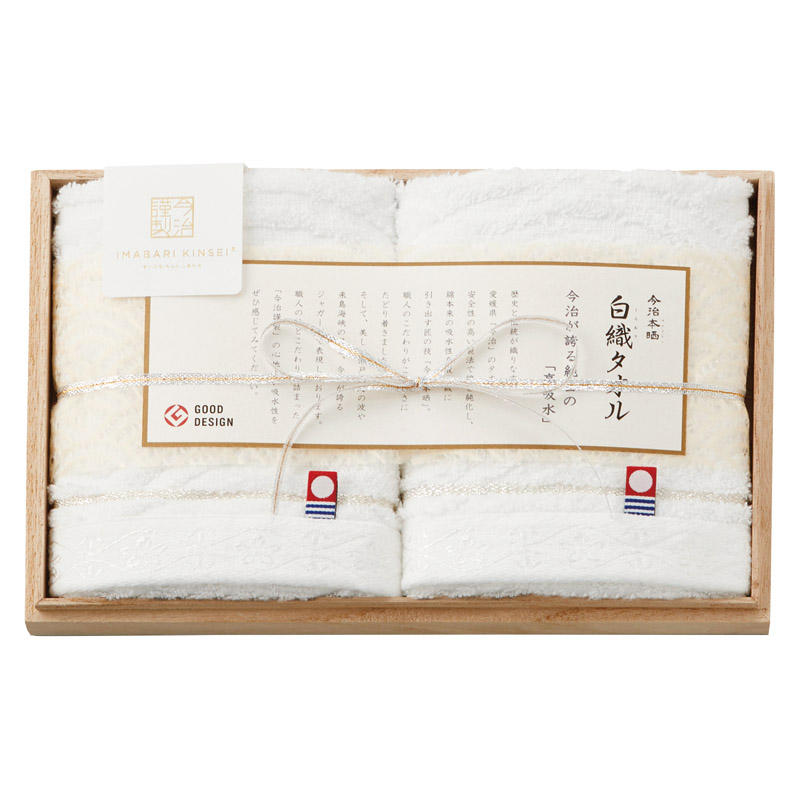 今治謹製 白織タオル 木箱入りウォッシュタオル2P