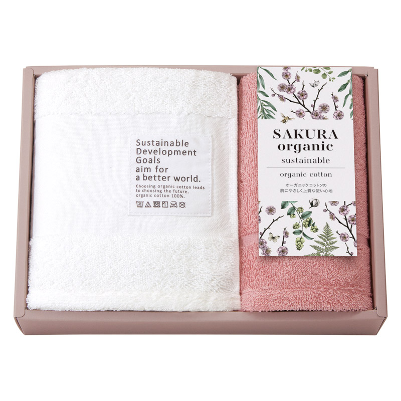 国際認証取得オーガニック フェイス1P・ハンドタオル1P サクラ