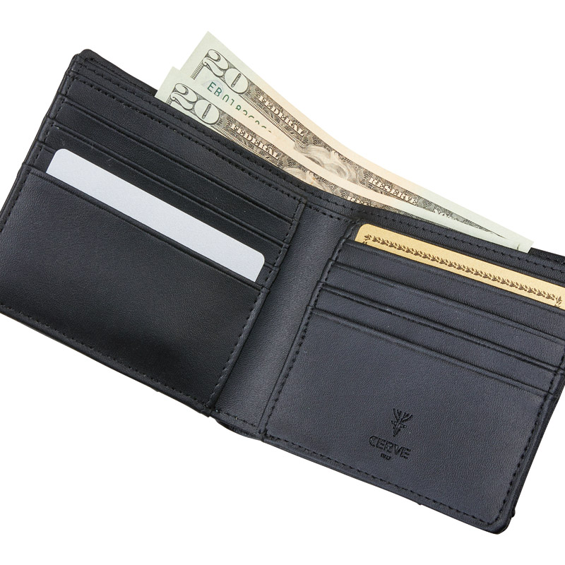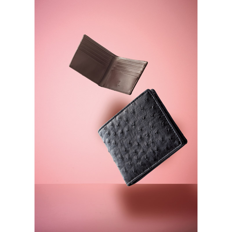 チェルベ オストリッチ風型押二つ折財布 ブラック