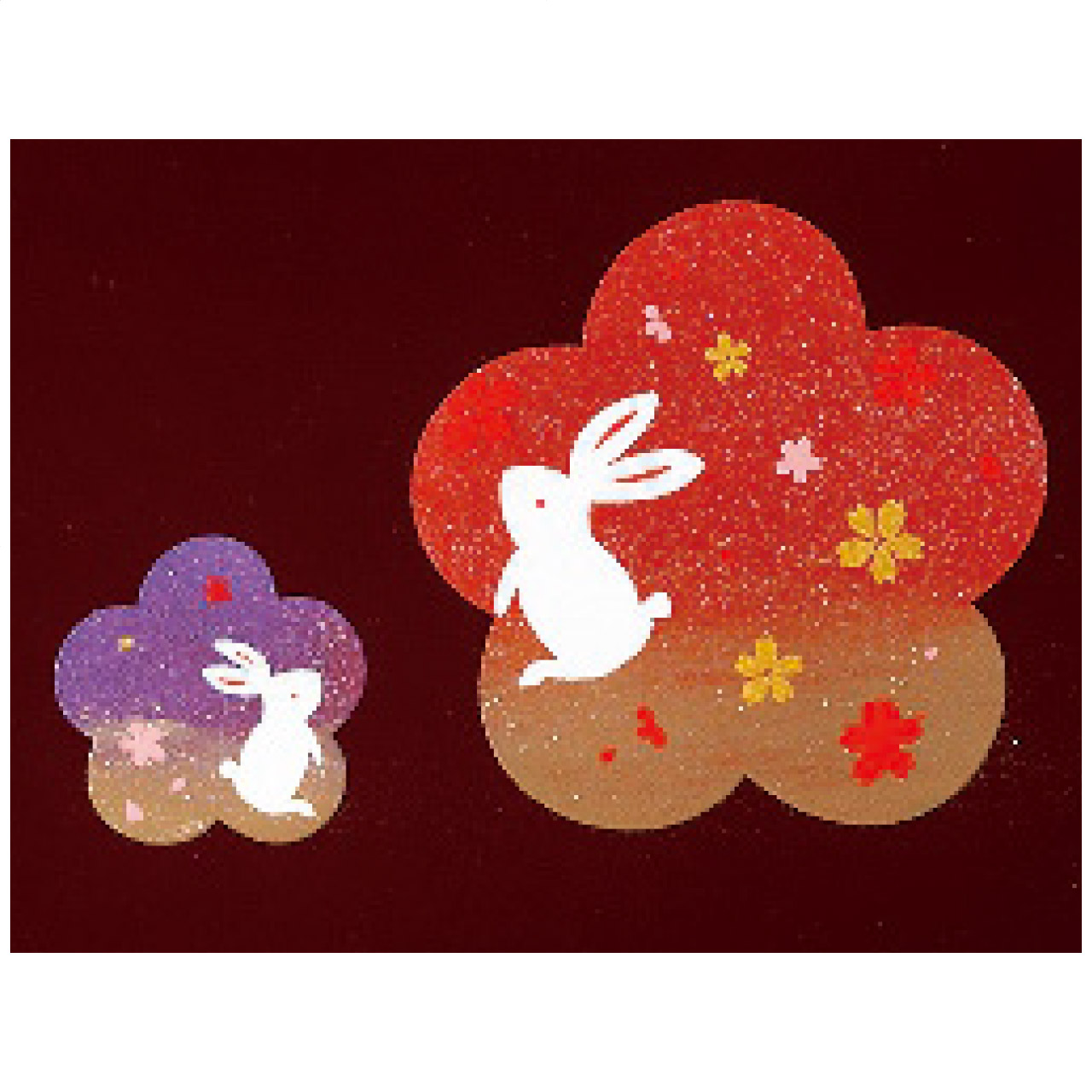 紀州塗 宴うさぎ 溜塗丸盆(尺丸)