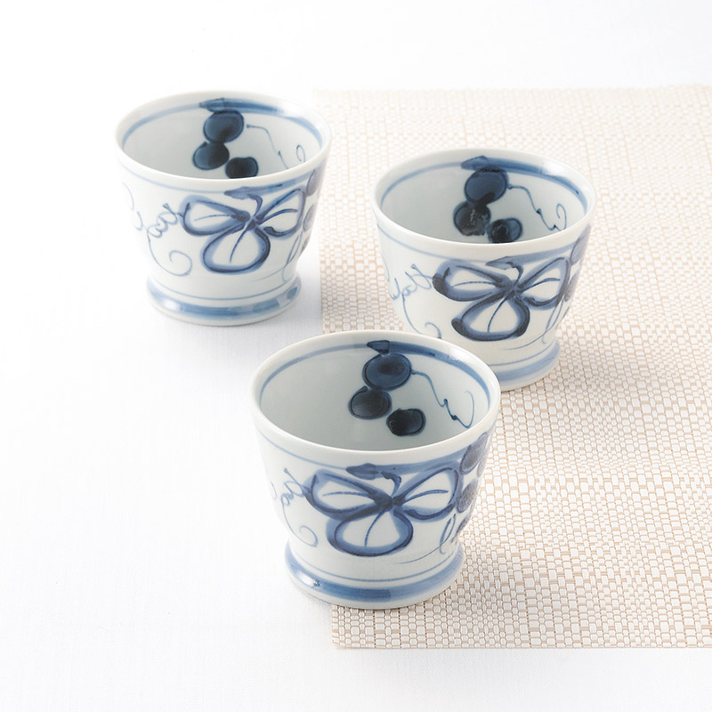 波佐見焼 古染青磁ぶどう絵トリオマルチカップ揃
