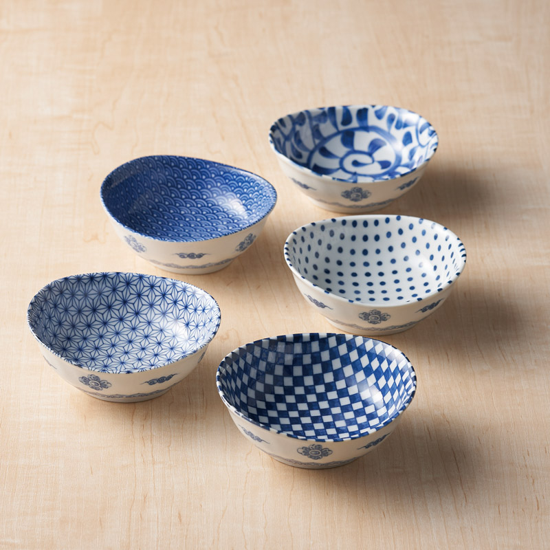 藍染 楕円小鉢5柄揃