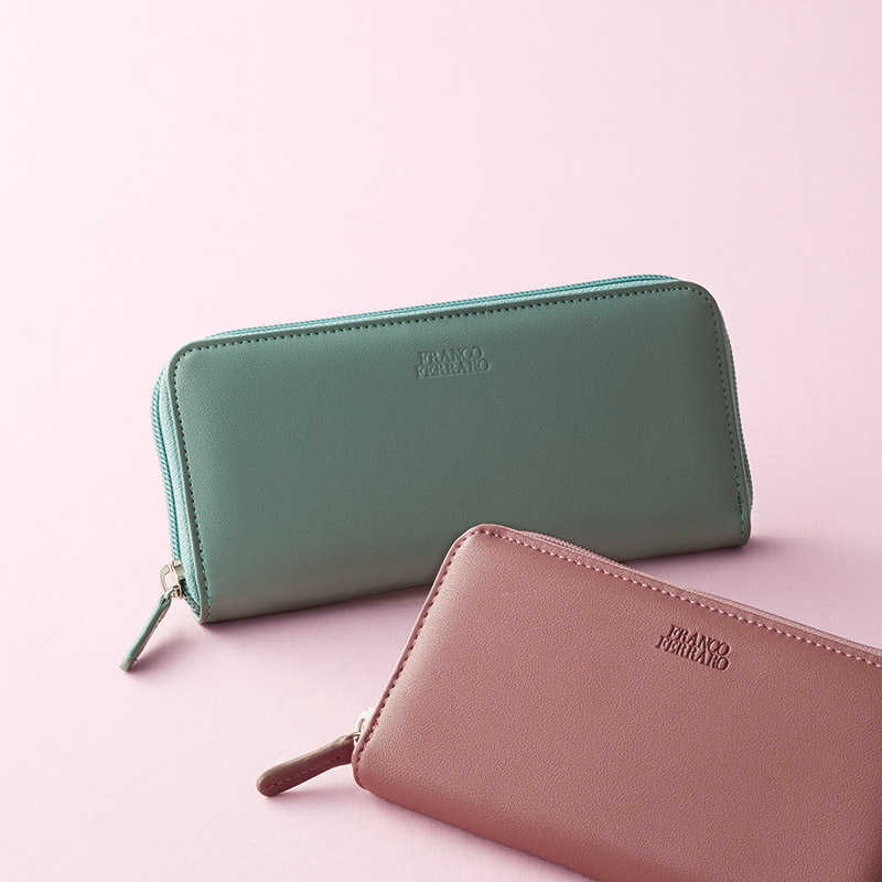 フランコフェラーロ ラウンドファスナー長財布 ピンク