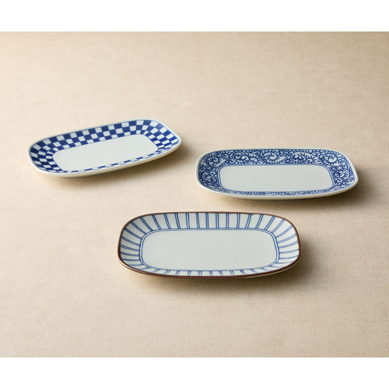 美濃焼 藍屋 長角皿トリオ