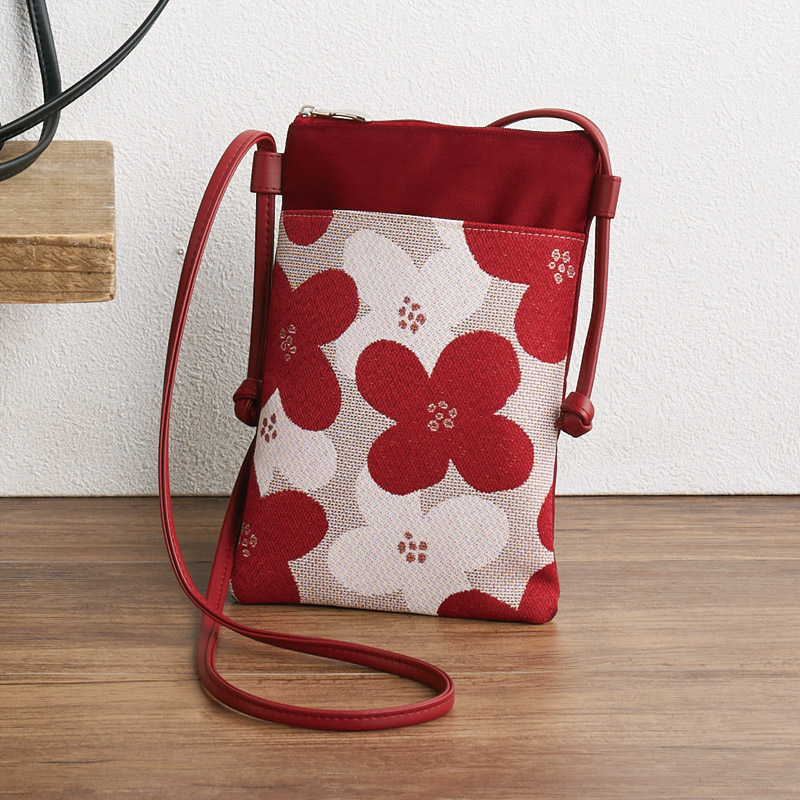 尾州織スマホポシェット レッド