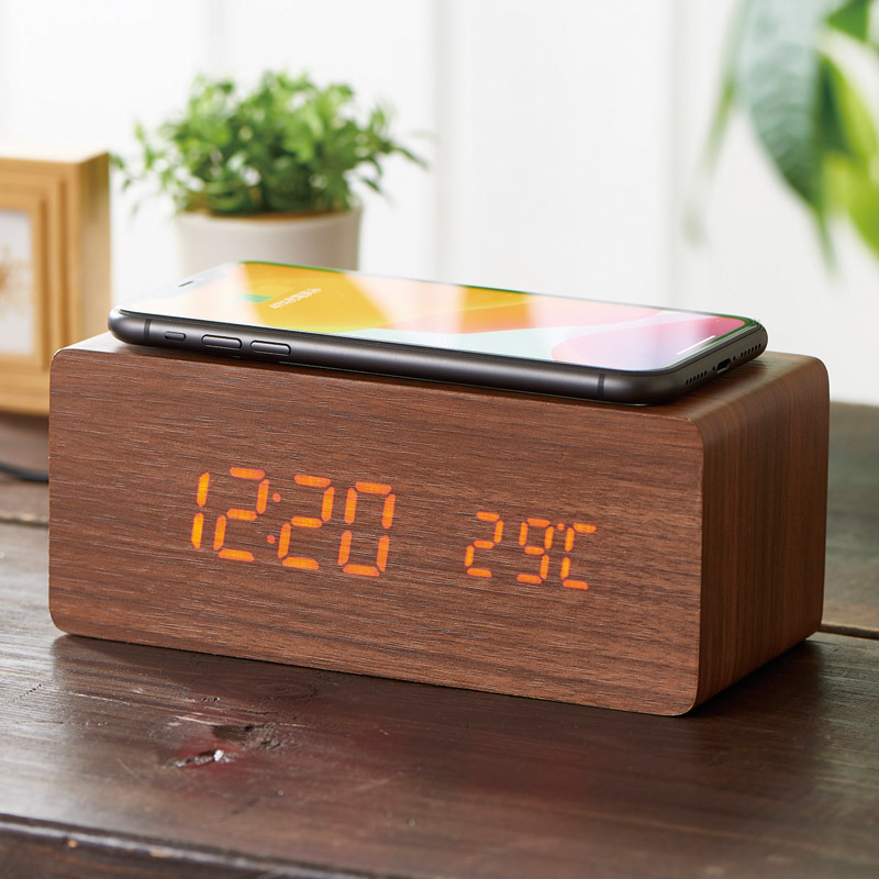 ワイヤレススピーカー・ワイヤレス充電クロック(ナイトライト付)
