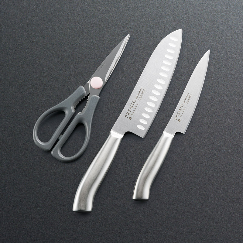 プレミオ オールステンレス三徳・ペティ・キッチンバサミセット