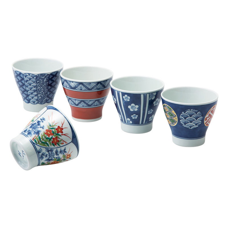 波佐見焼 染錦文様 カップ5客揃