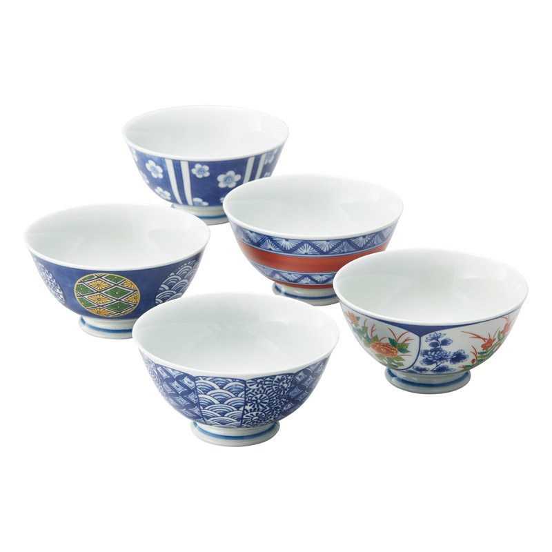 波佐見焼 染錦文様 飯碗5客揃