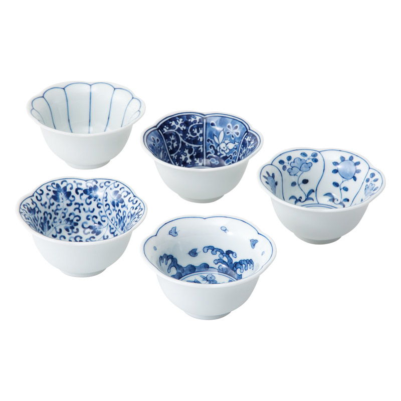 波佐見焼 藍文様 花型小付5客揃