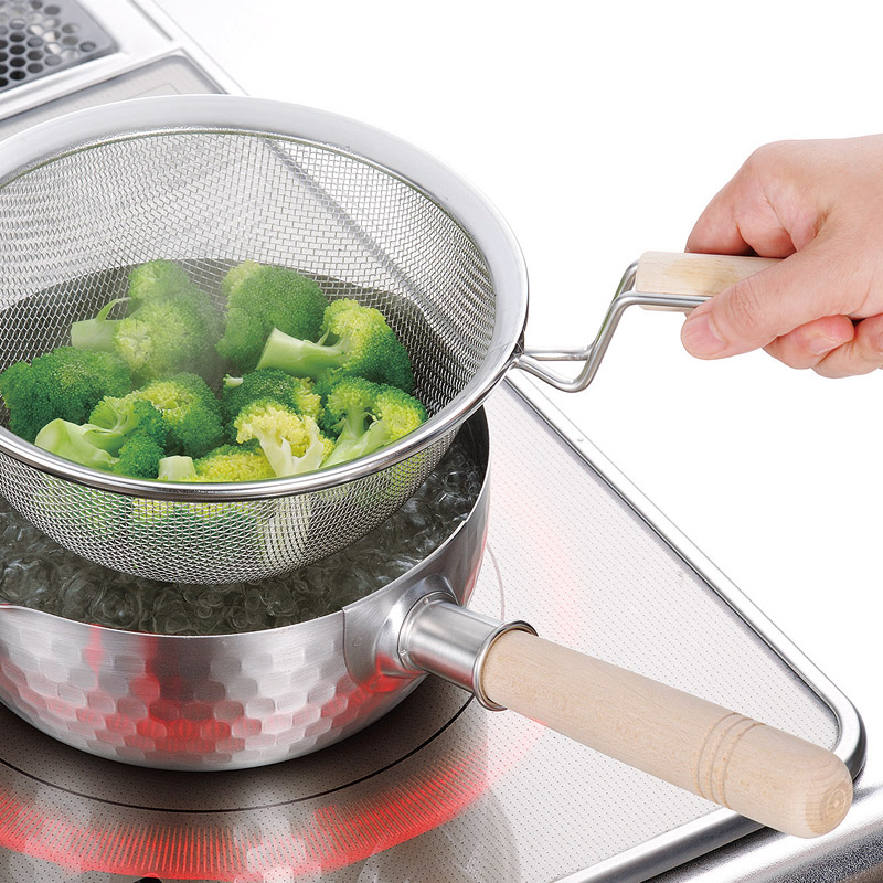 彩食庵 IH対応ステンレス雪平鍋&木柄ザルセット
