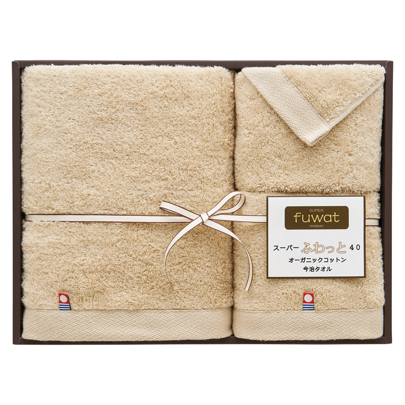 スーパーふわっと40 オーガニックコットン今治タオルセット ベージュ