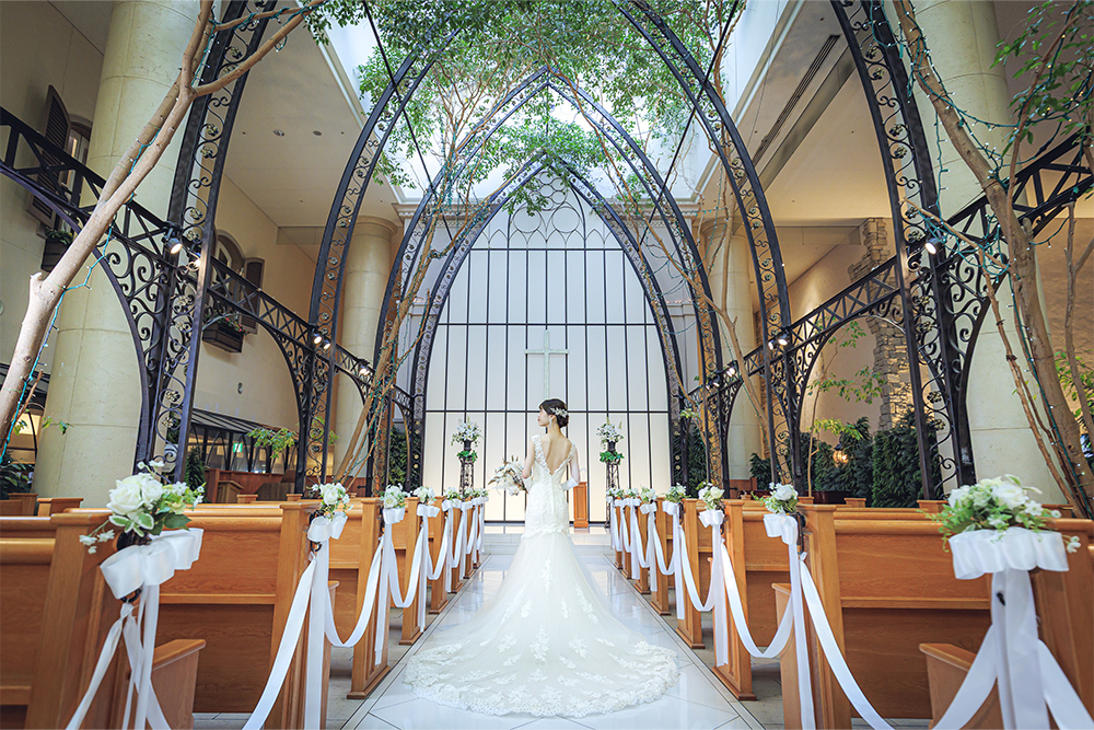 神聖な雰囲気の中、ウェディングドレス姿を美しく残せます。