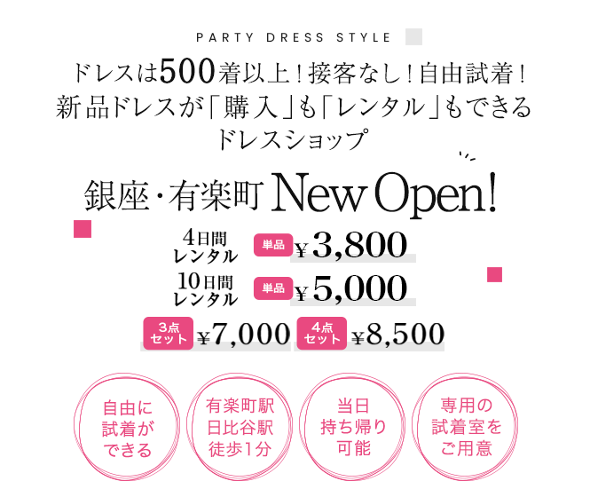 新品新作ドレスを購入もレンタルも出来る有楽町・日比谷1分にあるNEW STYLEなドレスショップです。