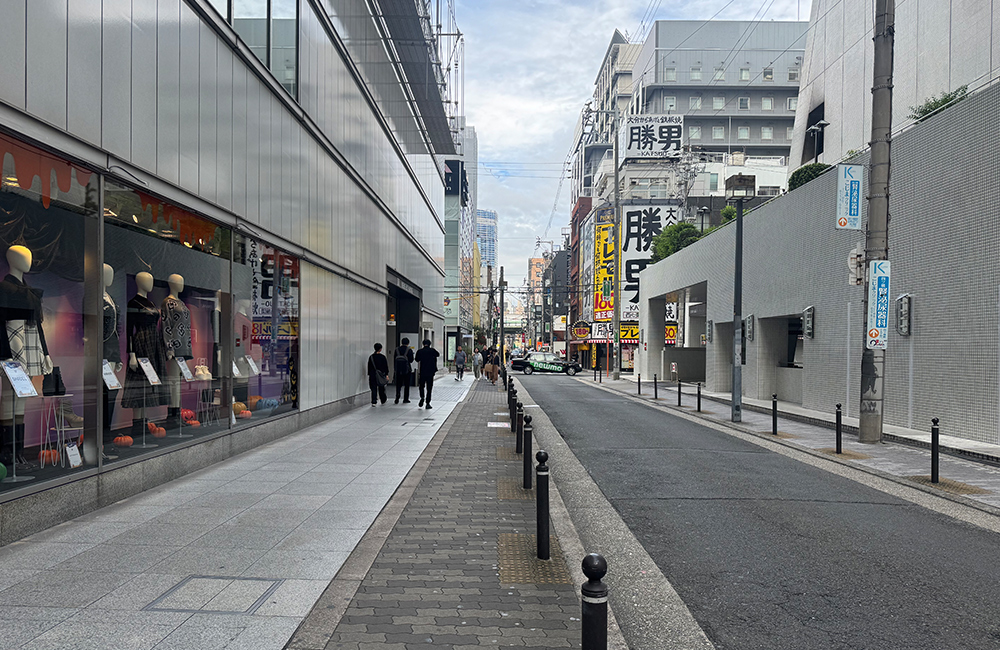 ②地上に出たらすぐ左の道(OPAの横)を