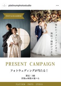 プラチナフォトスタジオではInstagram限定の撮影プレゼントキャンペーンも