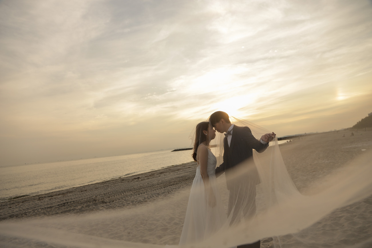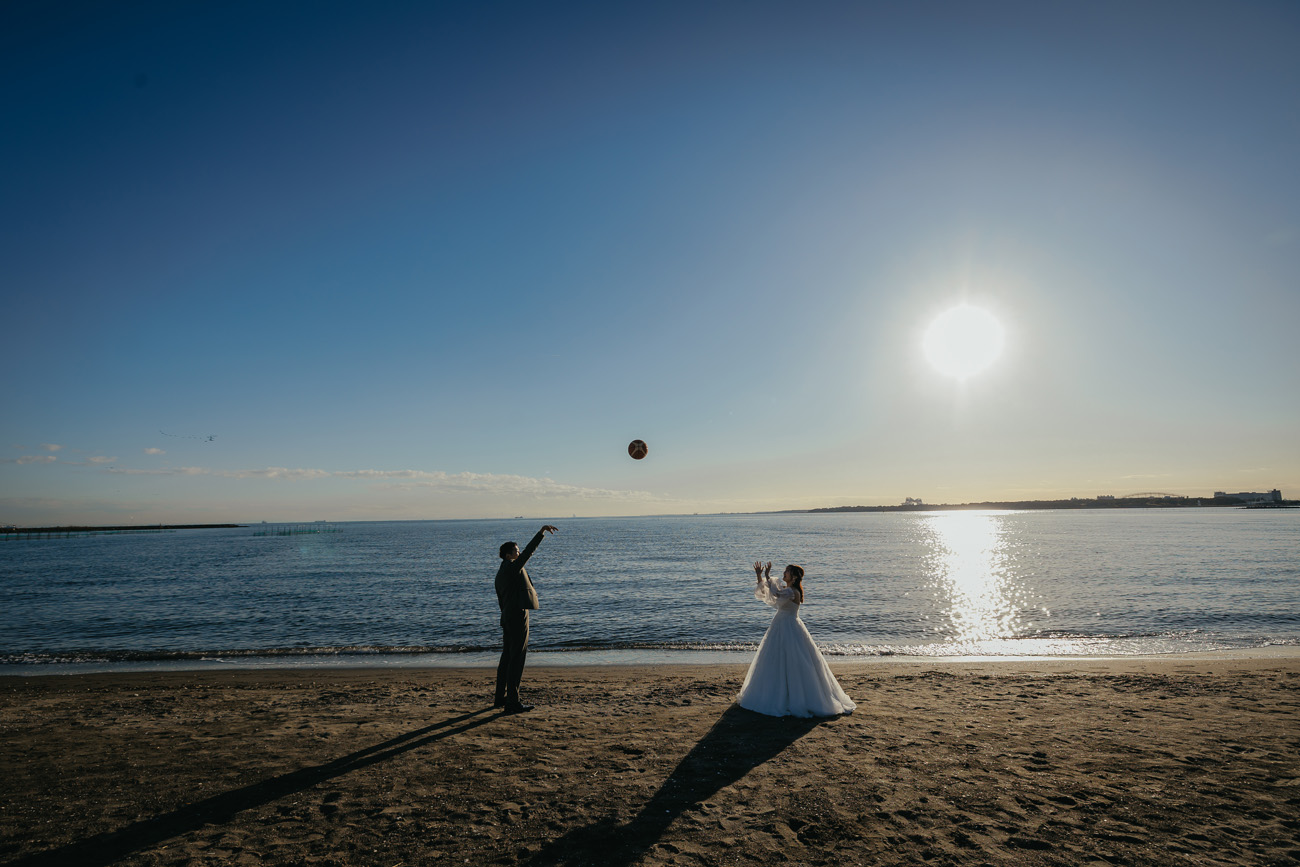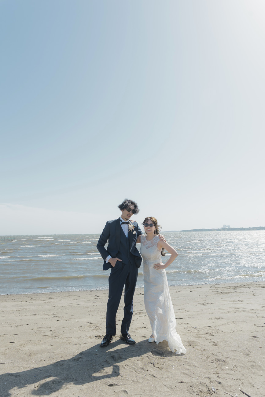 海での前撮りは、スタジオ撮影のように作り込む必要はありません。