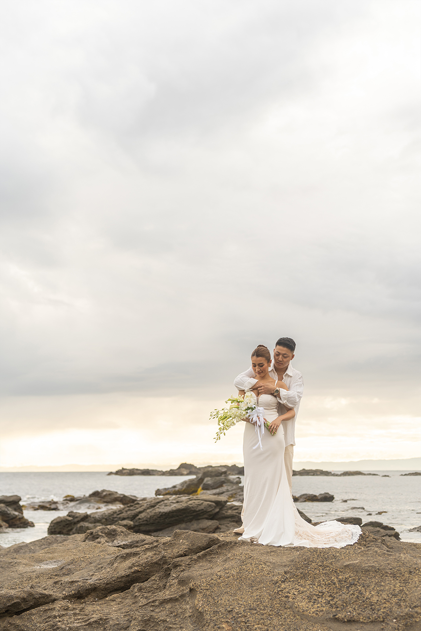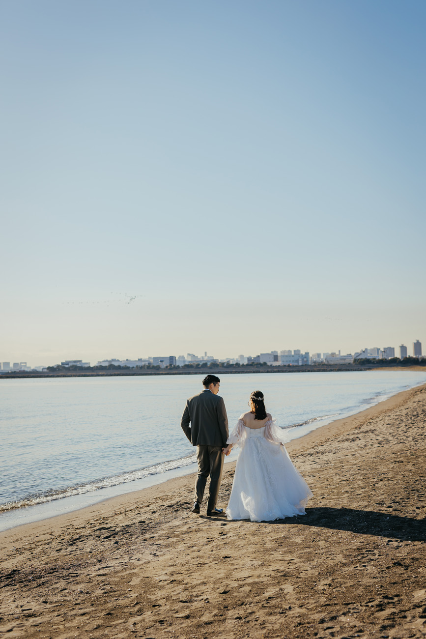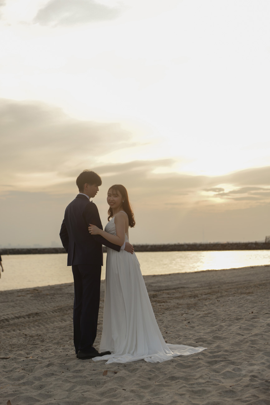 海での前撮りは、スタジオ撮影のように作り込む必要はありません。