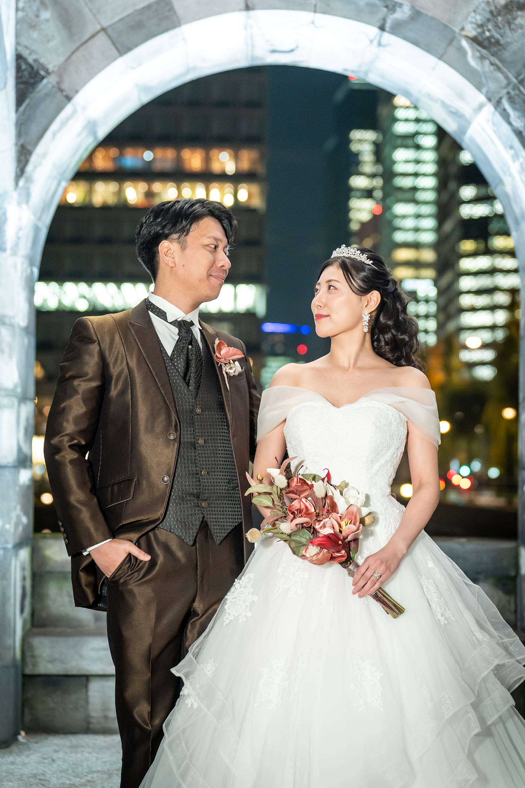この度は、数あるスタジオの中から当スタジオをお選びいただき、また心のこもったご感想をお寄せいただき誠にありがとうございます。 料金設定やプラン内容についてご安心いただけたとのこと、大変嬉しく拝見いたしました。最初にご案内している価格内で、ヘアメイク・小物・アテンドまで含まれている点や、ドレスのグレードアップ料金がかからない点は、安心して撮影当日を迎えていただきたいという私たちの想いでもございます。その点を評価していただけたこと、スタッフ一同大きな励みとなっております。 ヘアメイクにつきましても、事前のヒアリングや仕上がりにご満足いただけたとのこと、担当スタッフも大変喜んでおります。夜撮影に映えるメイクや、お客様の雰囲気に合わせたご提案ができたことを光栄に思います。また、撮影中の進行やカットのご提案についてもお褒めのお言葉をいただき、誠にありがとうございます。 衣装や小物に関しても、追加のご準備なく撮影を楽しんでいただけたとのこと、安心いたしました。おふたりにとって大切な一日を、リラックスして楽しんでいただけたのであれば何よりでございます。 今後も価格以上の満足をご提供できるよう、サービス・品質ともに努めてまいります。この度は誠にありがとうございました。おふたりの末永いお幸せを、スタッフ一同心よりお祈り申し上げます。