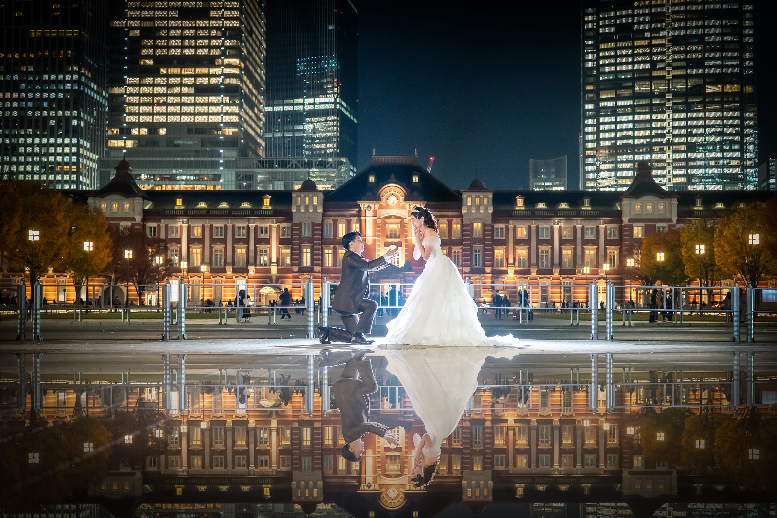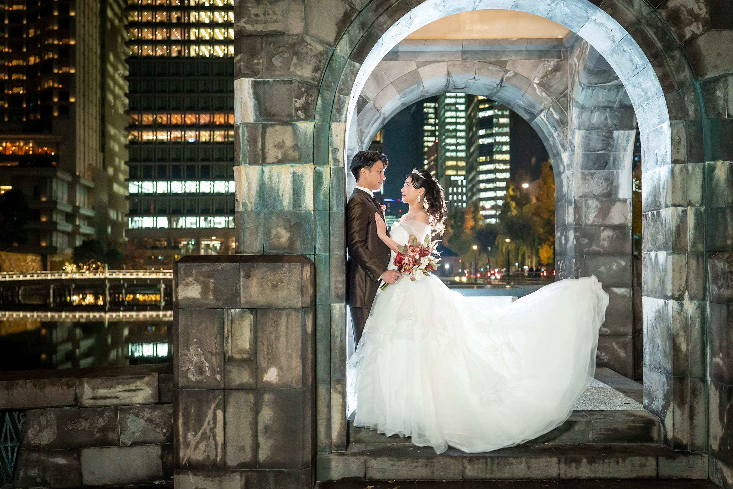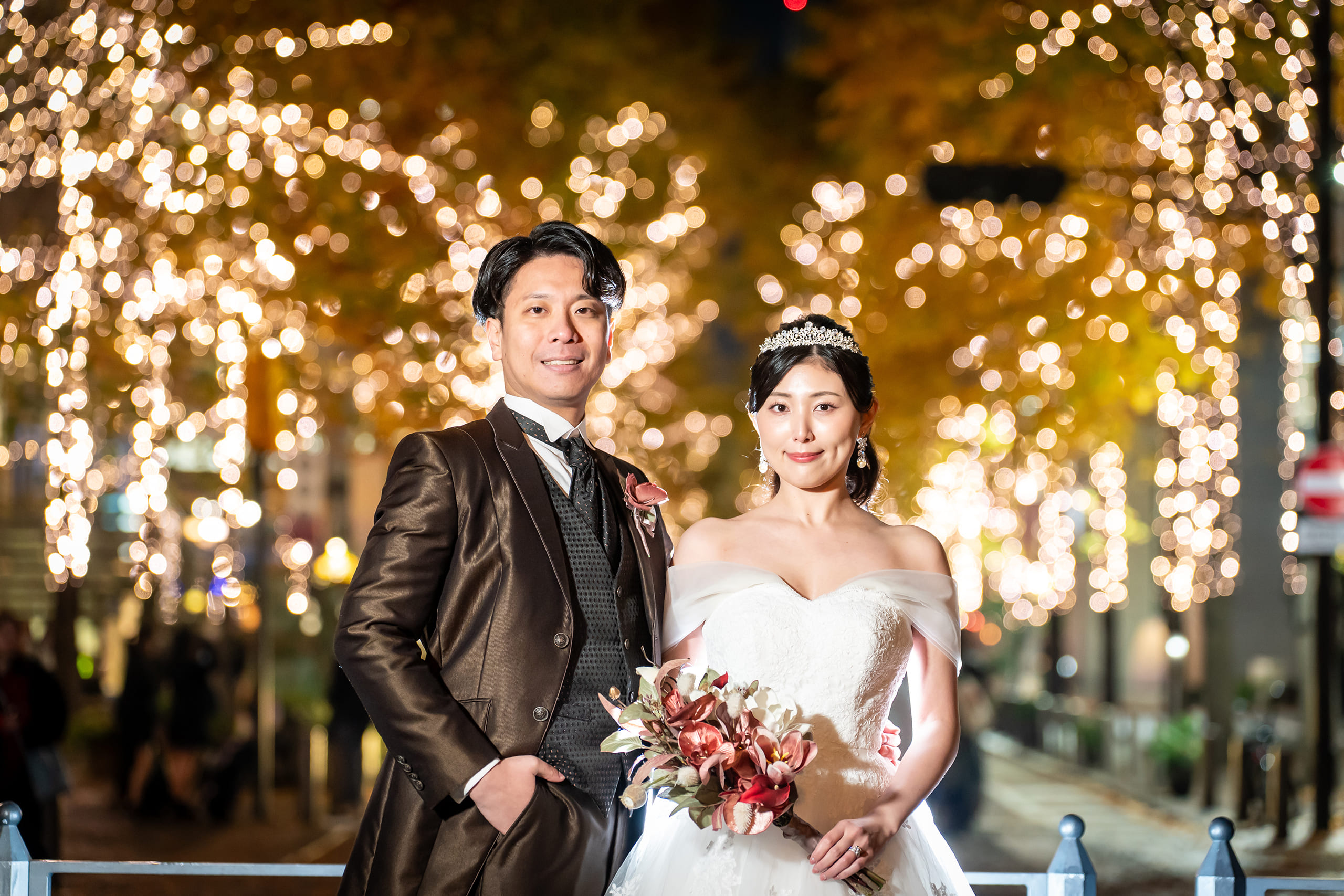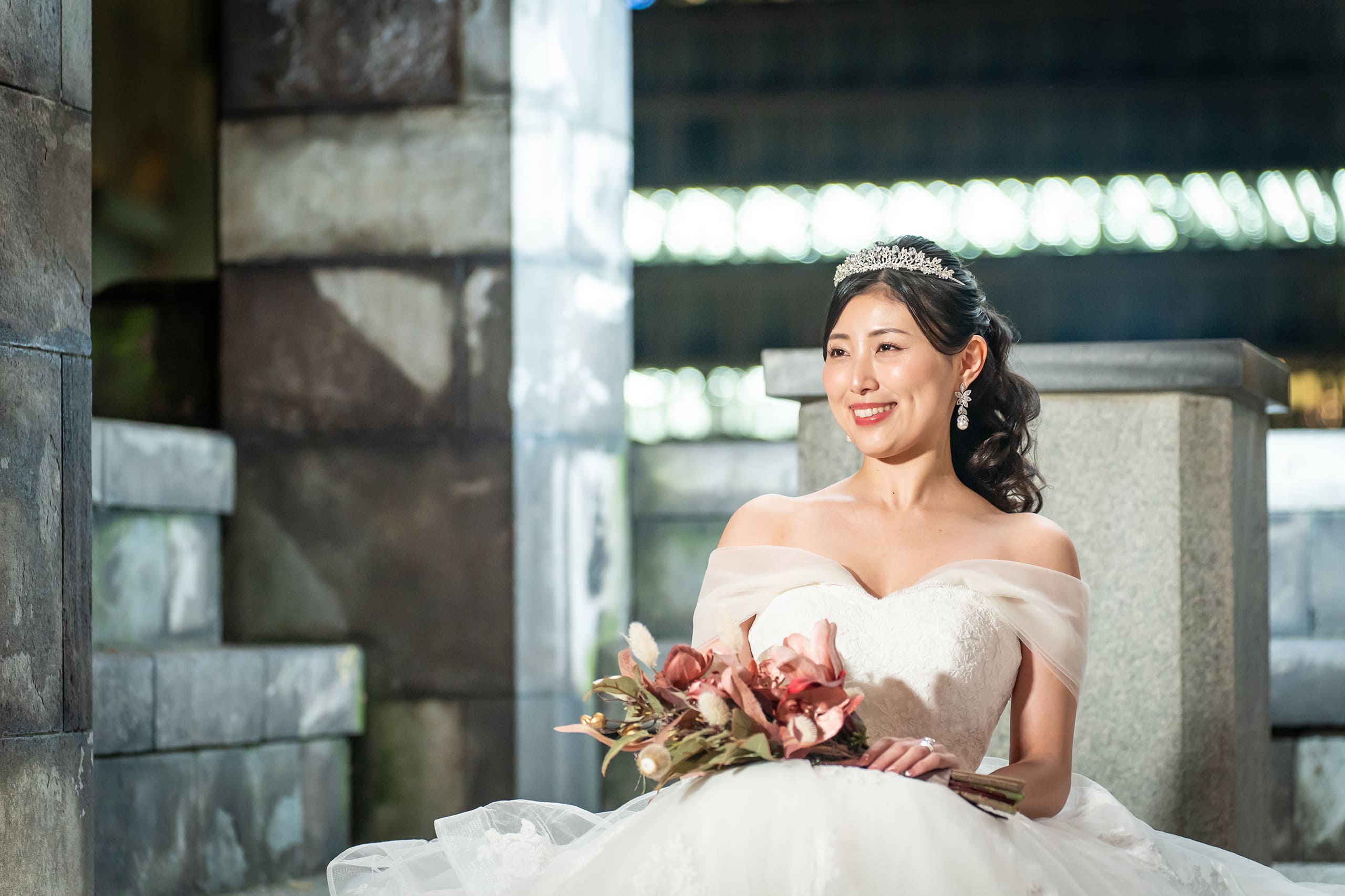 料金設定がとても良心的で、最初に提示された価格内にヘアメイクや小物一式、アテンドまで含まれている点に惹かれて、このスタジオを選びました。安い価格帯にも関わらず、後からどんどんオプションが追加されることがなく、記載されている内容ですべて完結するのは本当に安心感がありました。ドレスのグレードアップ料金もないため、試着した中から純粋に「好き」と思えるドレスを選べたのも大きな魅力でした。 撮影中は都度写真を確認させていただき、その時点でも素敵だと感じていましたが、納品された写真は想像以上の仕上がりで感動しました。特にリフレクション加工はとてもおすすめです。 ヘアメイクでは、普段のメイクや好み、使いたい色味まで細かくヒアリングしてくださり、夜撮影でもしっかり映える美しい仕上がりにしていただきました。私はほぼお任せでしたが、プロならではのセンスでとても満足しています。カメラマンさんもテンポよく撮影を進めてくださり、希望カットはもちろん、自分たちでは思いつかないようなショットもたくさん提案していただけて嬉しかったです。 衣装は可愛いドレスが豊富に揃っており、追加料金なしで自由に選べる点が本当にありがたかったです。小物類も充実しているので、事前に自分で準備する必要がなく、気軽に撮影に臨むことができました。 この価格でここまでの内容と満足度を得られるスタジオは、なかなかないと思います。安心して、そして心から楽しみながら撮影できる素敵なスタジオでした。