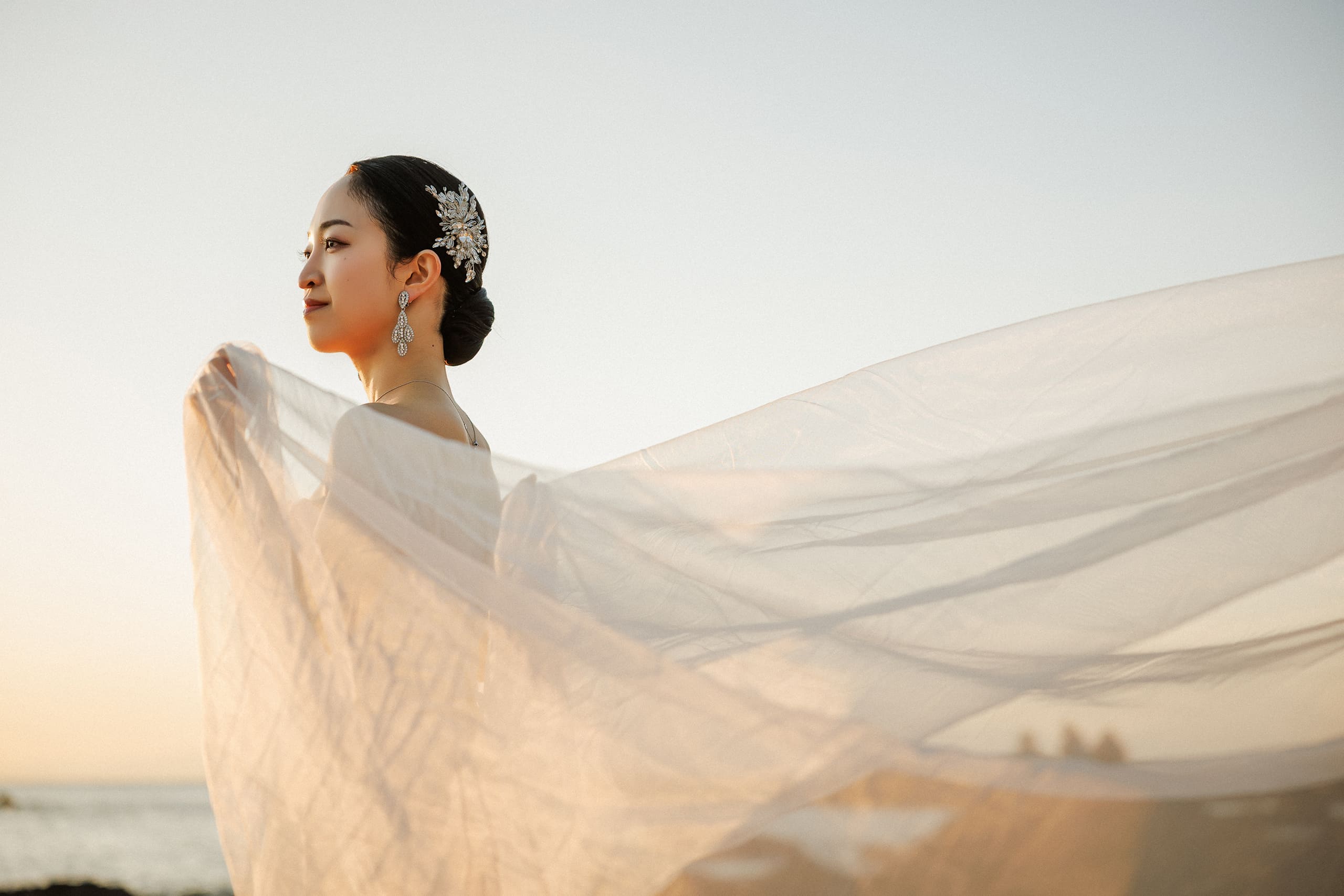 城ヶ島での撮影を希望してスタジオを探していたところ、料金が比較的お手頃だったため問い合わせをしました。マイカーでの撮影も希望していたのですが、快く引き受けてくださったことが決め手となり、こちらのスタジオにお願いすることにしました。 仕上がった写真は、光や影の使い方がとても美しく、ロケーションの魅力を最大限に引き出してくださっていて大満足です。 撮影中は、細かくポージングのアドバイスをしていただき、撮るたびにたくさん褒めてくださったので、まるで女優になったような気分でとても楽しく撮影ができました。カメラマンさんやヘアメイクさんも楽しみながら撮影している様子が伝わってきて、チームで一つの作品を作り上げているような感覚がとても印象に残っています。 衣装については、身長の関係で選べるドレスがやや限られていた点が少し残念でした。また、アクセサリー変更に追加料金がかかる点もありましたが、再度直接来店せずとも写真で選び直しができるよう配慮していただけたのはありがたかったです。 ヘアメイクは、これまで満足できた経験があまりなかった中で、細かな希望まで丁寧に汲み取ってくださり、本当に大満足の仕上がりでした。 ムービーを含めオプションをいくつか追加しましたが、それでも他のスタジオと比べてお手頃な価格で、総合的にとても満足できる撮影となりました。