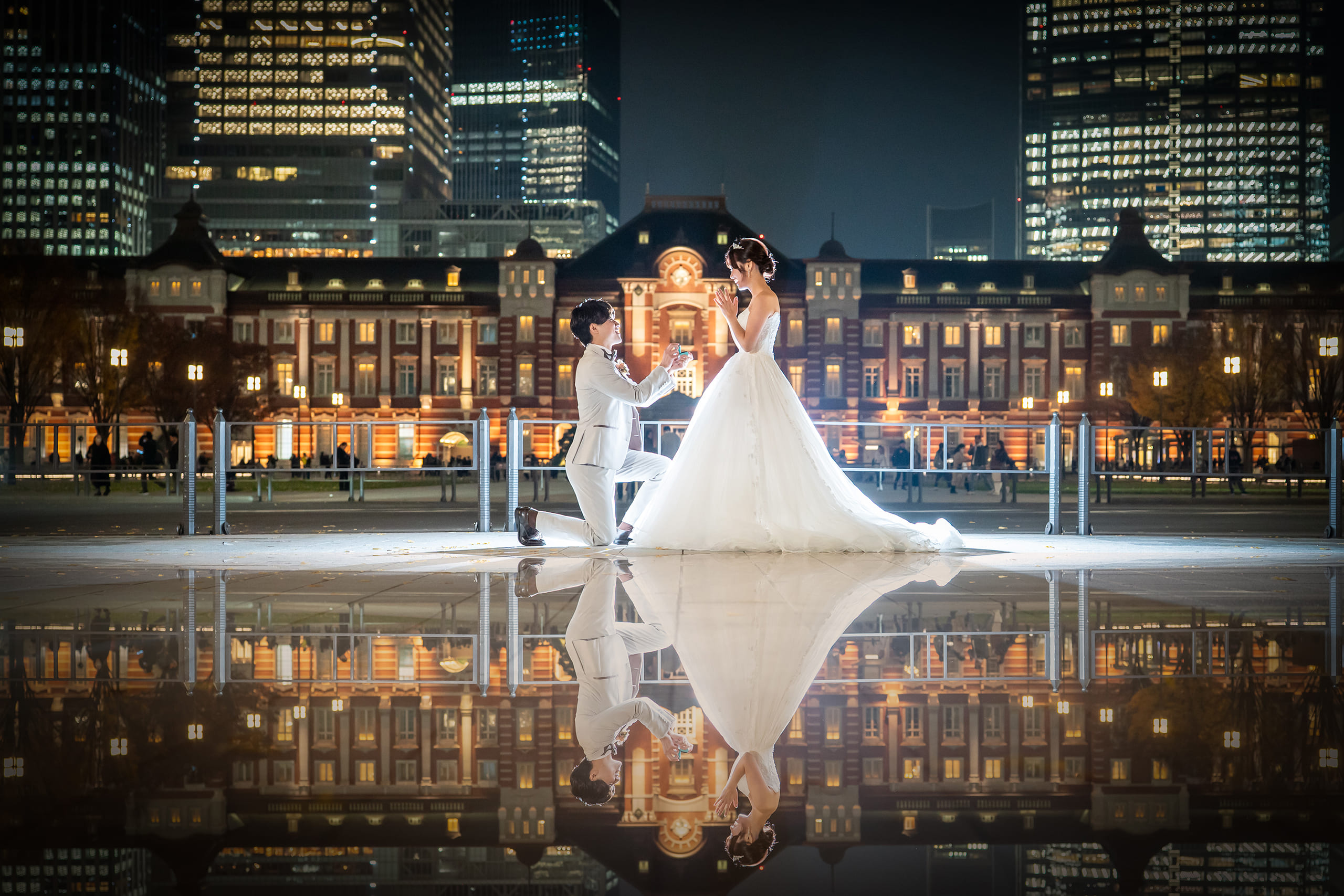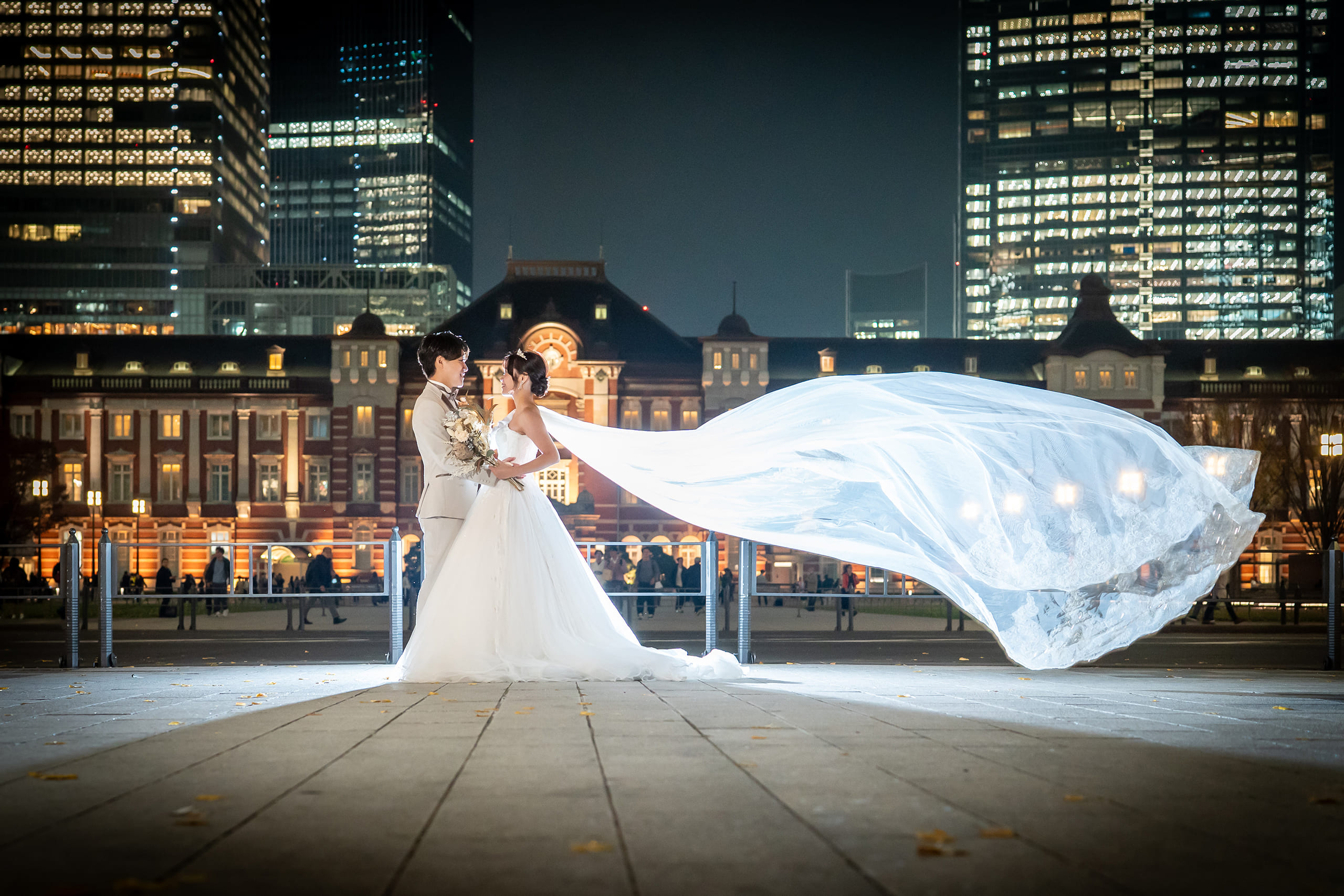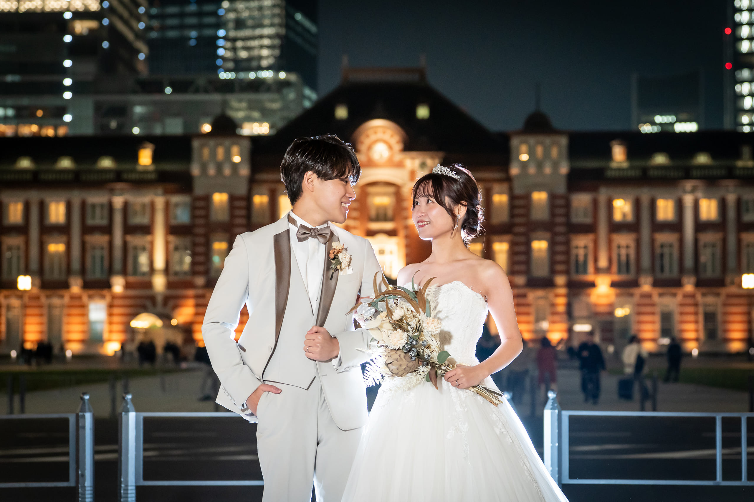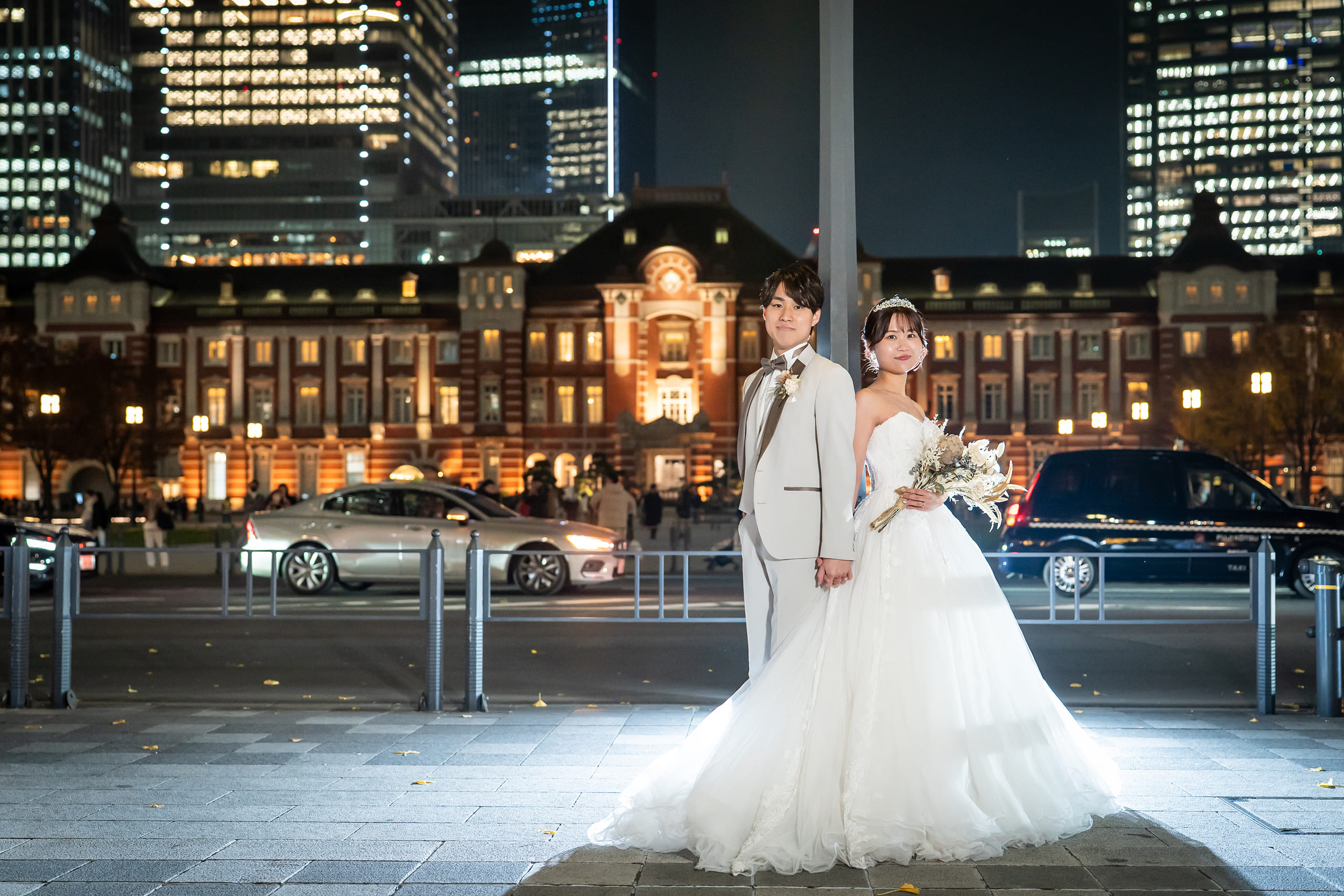東京駅前での撮影を希望し、東京駅での実績が豊富なスタジオを探していたところ、こちらのスタジオに出会いました。価格が一律で追加料金が発生しない明朗な料金設定に安心感があり、衣装の種類も豊富だったこと、そして来店相談時のスタッフの方の対応がとても気持ちよかったことが決め手となり、お願いすることにしました。 仕上がった写真は、日本とは思えないほど異国情緒あふれる東京駅周辺の風景とともに、とても感動的な仕上がりでした。肌補正をかけていないにもかかわらず、自然で艶のある質感に仕上がっており、写真のクオリティの高さに驚きました。 撮影当日の流れやヘアメイクに関する細かな質問にも、事前から迅速かつ丁寧に対応していただき、安心して当日を迎えることができました。 衣装は、追加料金なしでドレス・タキシードともに豊富なラインナップから選ぶことができ、必ず満足できる一着に出会えると思います。 ヘアメイクも、細かな要望までしっかり汲み取ってくださり、技術の高さを感じる仕上がりでした。全体を通して満足度が非常に高く、価格以上の体験と写真を残すことができました。 東京駅周辺での撮影を検討されている方には、ぜひおすすめしたいスタジオです。