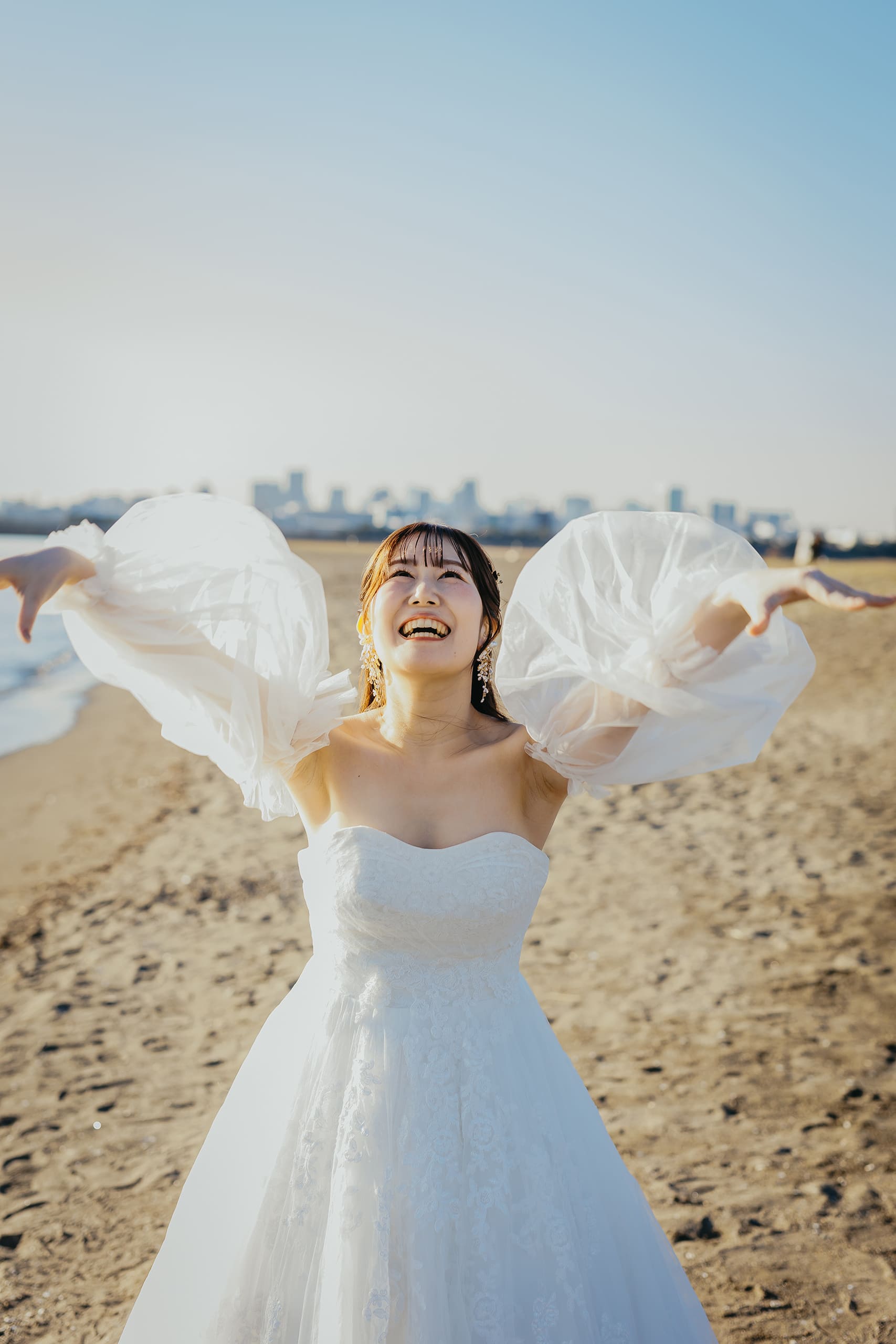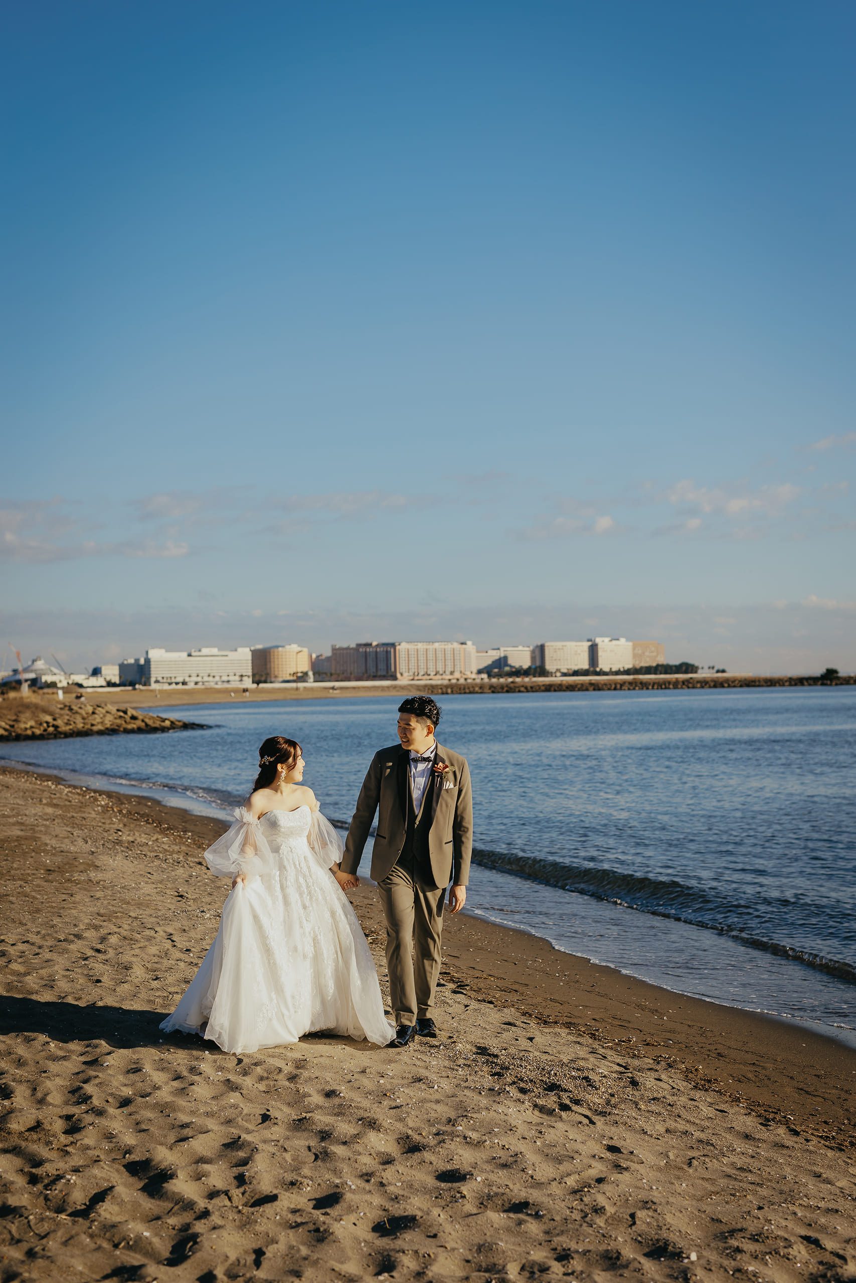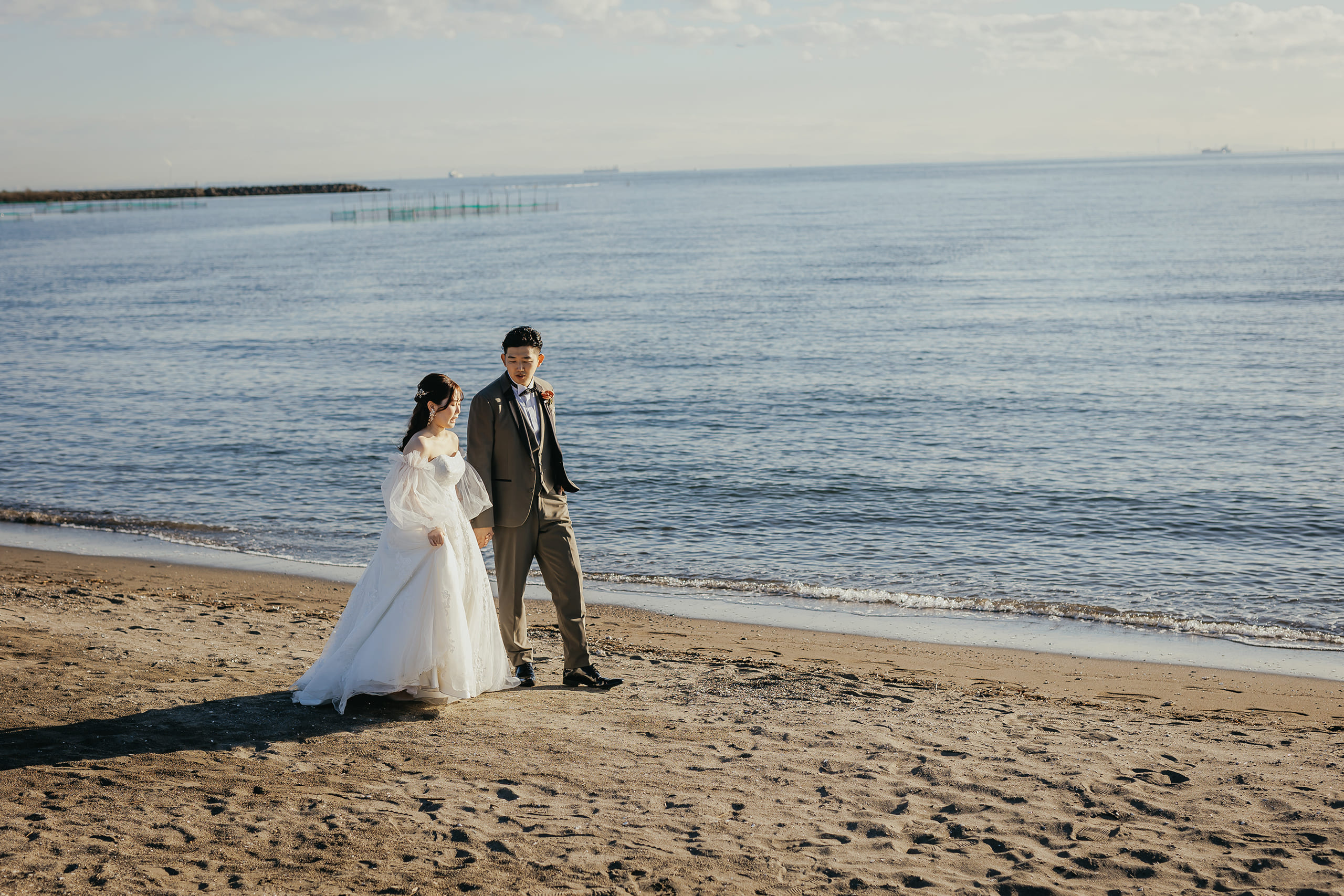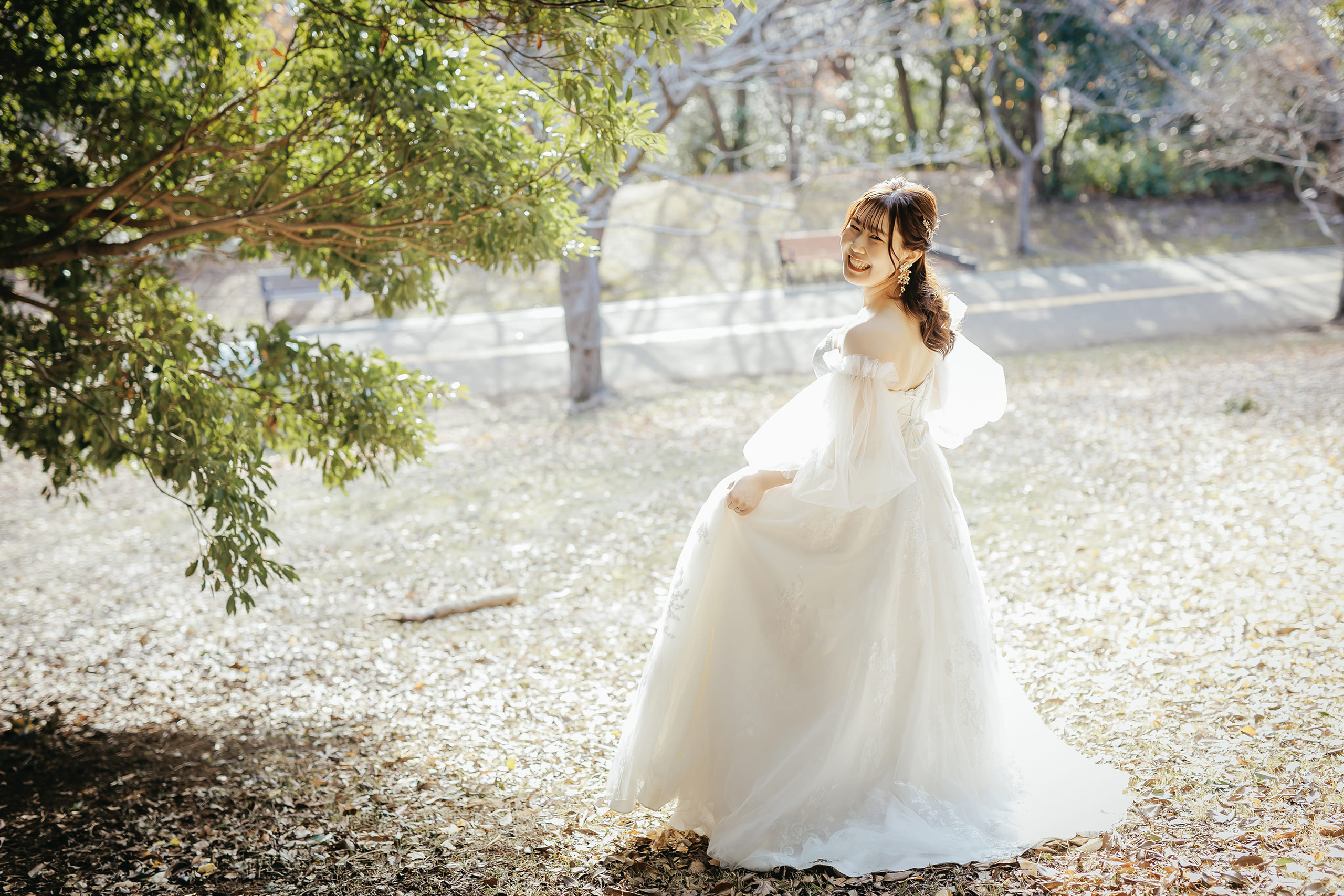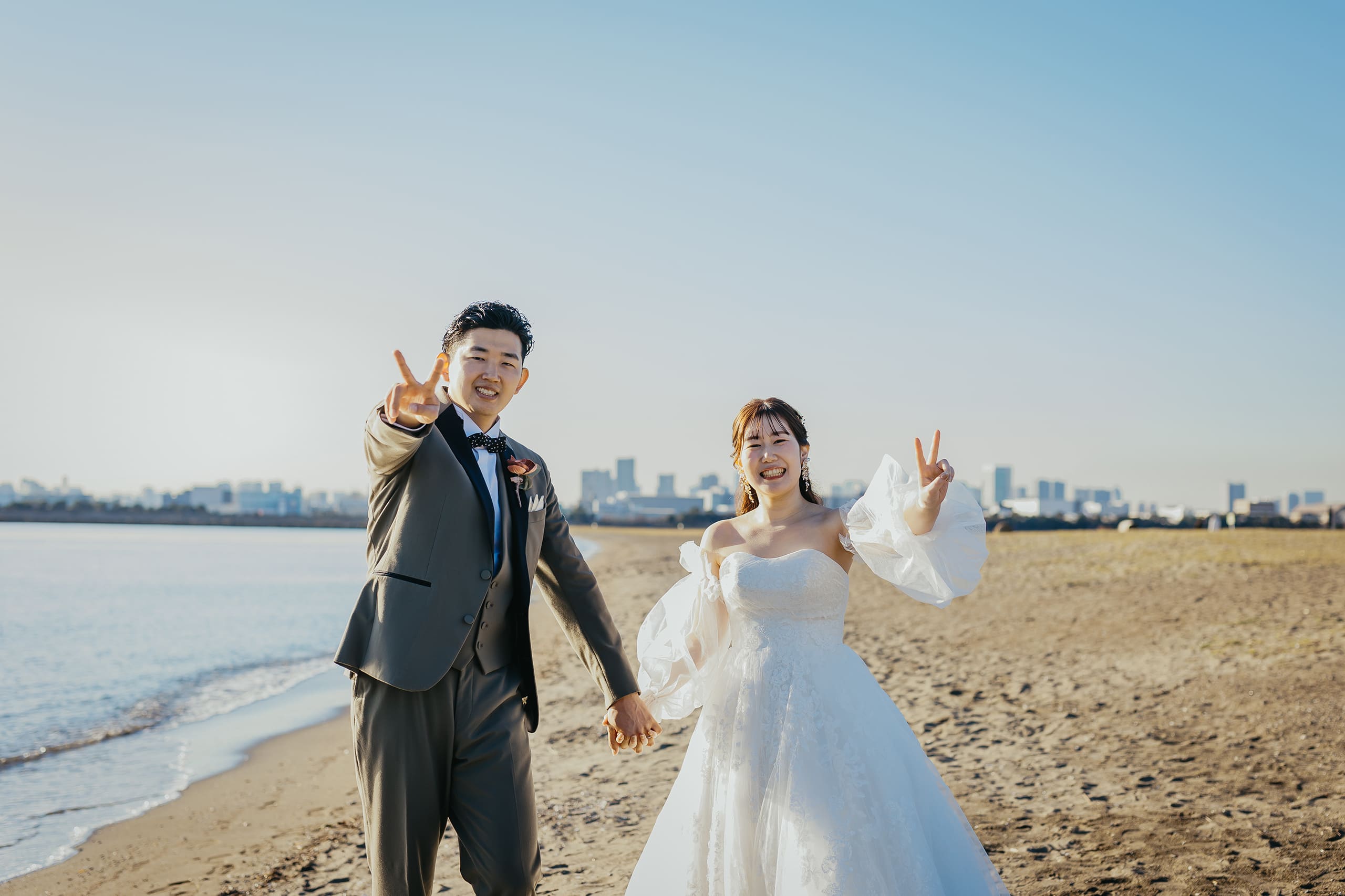 お手頃な価格でありながら、ドレス・タキシードが追加料金なしで自由に選べる点や、HPに掲載されている写真のクオリティの高さに惹かれてこちらのスタジオを選びました。 実際の撮影では、納品のスピードの早さにまず驚き、仕上がった写真のクオリティの高さに感動しました。森と海の2ロケーション撮影で、時間が足りるか不安もありましたが、カメラマンの的確で無駄のない撮影スタイルにより、短時間でも確実に素晴らしいカットを残していただけました。 撮影に慣れていない私たちでしたが、カメラマンとヘアメイクさんの温かい声掛けのおかげで自然と緊張がほぐれ、仕上がった写真はどれも良い表情で、とても満足のいくものになりました。希望していたカットもすべて叶えていただき、それ以上にたくさん撮影してもらえた点も嬉しかったです。 スタッフの対応も非常に丁寧で、マイページでのやり取りや確認が分かりやすく、不安なく準備を進めることができました。撮影前日に急な撮影リクエストをお願いした際も快く対応してくださり、本当に感謝しています。 衣装やヘアメイクも種類が豊富で、事前にHPやInstagramで確認できたのも安心材料でした。当日はヘアメイクさんが撮影に同行してくださり、ロケーションごとに細やかに対応してもらえたのが心強かったです。 価格、クオリティ、対応すべてにおいて満足度が高く、こちらのスタジオにお願いして本当に良かったと感じています。