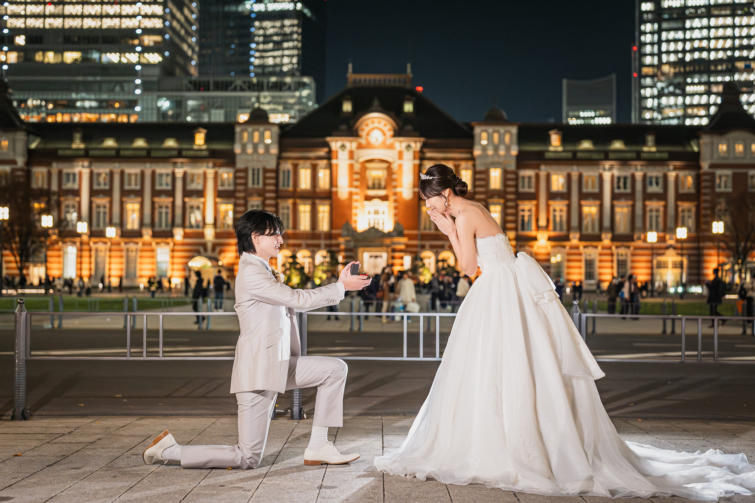 洋装でのスタジオ撮影と東京駅でのロケーション撮影の両方ができるプランを探していたところ、こちらのスタジオを見つけました。他社と比較した中でも価格が良心的だったことが大きな決め手です。また、契約前に事前の打ち合わせがあり、撮影内容や流れについて丁寧に説明していただけたため、イメージのズレがなく安心して申し込むことができました。 仕上がった写真はとても綺麗で、全体的に満足しています。事前に「撮ってほしい構図」やイメージをお伝えしていたのですが、希望していたカットをしっかり撮影していただけて嬉しかったです。美肌加工も不自然さがなく、自然に綺麗に見える仕上がりだった点も良かったと思います。 撮影当日はスタッフの皆さんが終始丁寧に対応してくださり、質問にも分かりやすく答えていただけたので安心して撮影に臨むことができました。おかげで落ち着いた気持ちで撮影を楽しむことができ、良い思い出になりました。 一点だけ気になった点としては、写真の納品前に公式Instagramに撮影写真が掲載されていたことです。できれば事前にその旨を教えていただくか、先に写真を納品していただけるとより良かったと感じました。 価格については、スタジオ撮影と東京駅でのロケーション撮影、さらに衣装レンタルやヘアメイクまで含まれてこの料金であれば、とても満足度が高いと感じました。オプションも必要なものだけを追加できる仕組みだったので、自分たちに合った内容で費用を調整できる点も良かったです。 全体として、内容・仕上がり・価格のバランスが良く、満足度の高い前撮りになりました。素敵な写真を残すことができて嬉しく思っています。