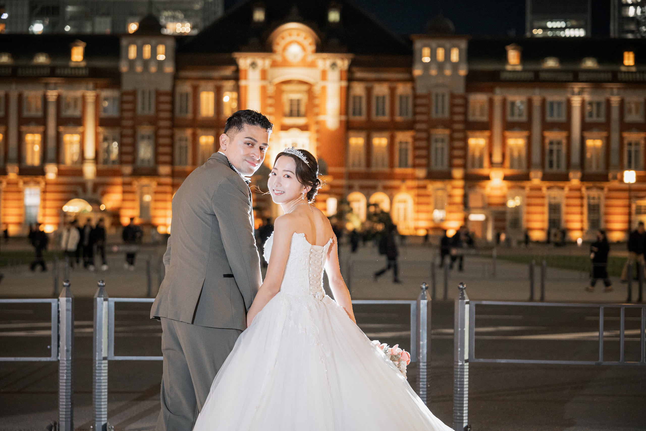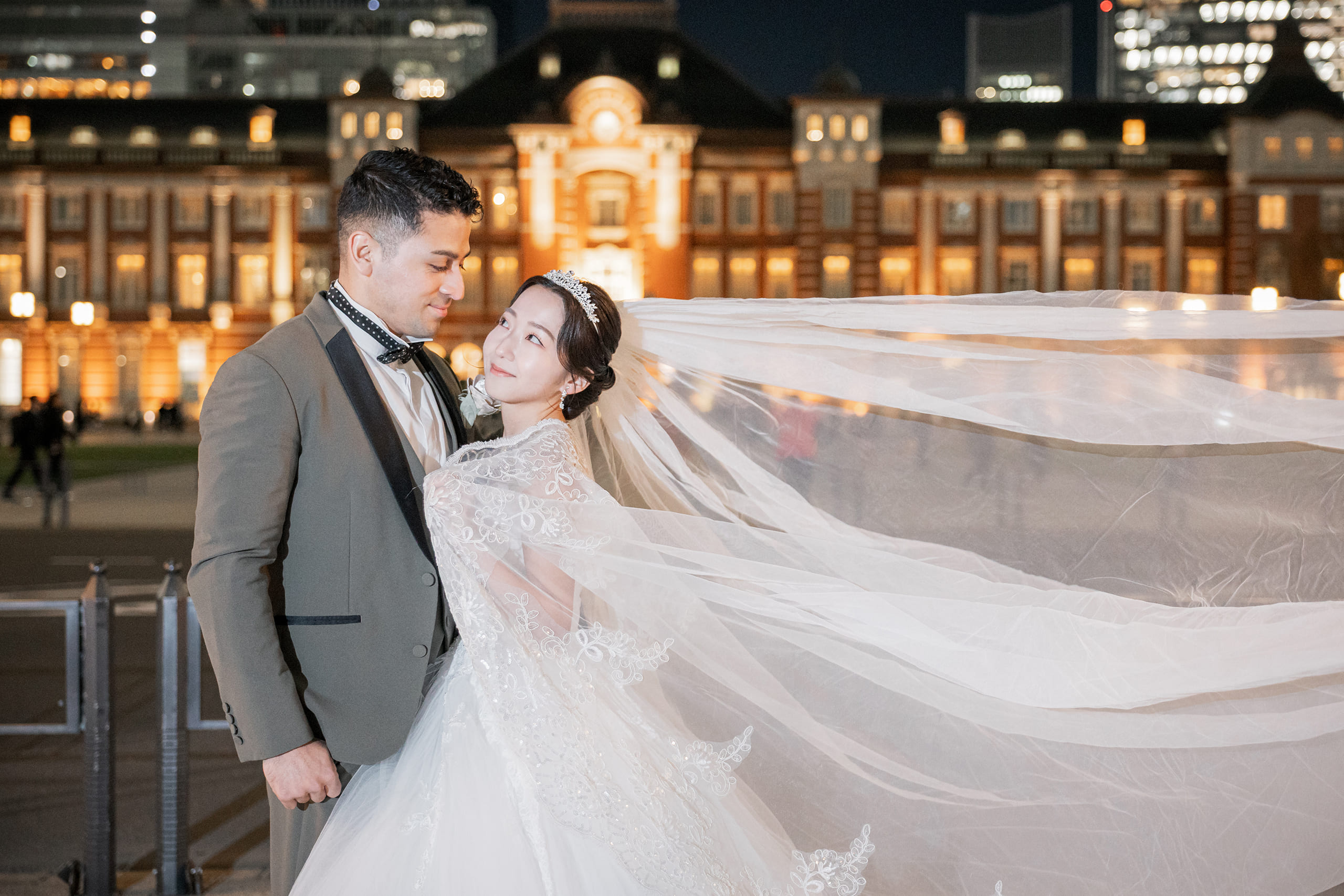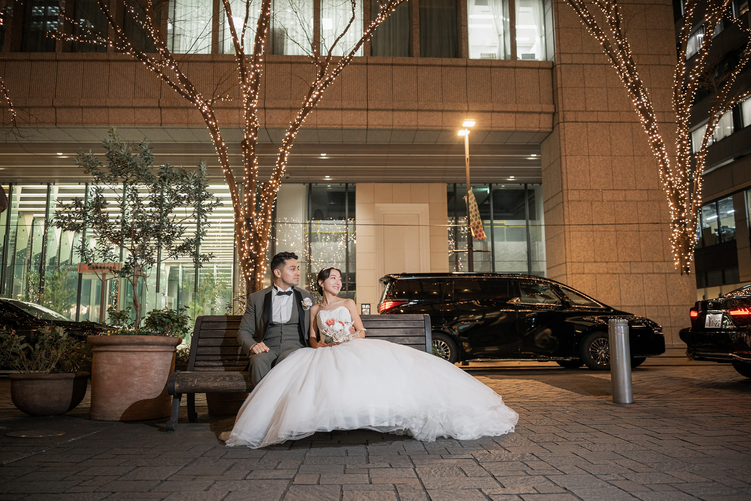 この度は大切な前撮り撮影をお任せいただき、誠にありがとうございました。 また、貴重なご感想をお寄せいただきましたこと、スタッフ一同心より御礼申し上げます。 スタジオ撮影に加え、東京駅やイルミネーションでのロケーション撮影をお楽しみいただけたとのこと、大変嬉しく拝見いたしました。特にイルミネーションのお写真を気に入っていただけたとのお言葉は、私たちにとっても大きな励みでございます。冬ならではの澄んだ空気の中での撮影はとても美しく、素敵なお写真をお届けできましたことを嬉しく思っております。 また、撮影時のポーズやヘアメイクのご希望にもご満足いただけたとのこと、安心いたしました。一方で、ネックレスの位置につきましては細やかな配慮が行き届かず、残念なお気持ちにさせてしまいましたことをお詫び申し上げます。今後はより細かな部分まで確認を徹底し、安心して撮影をお任せいただけるよう努めてまいります。 衣装につきましても、体型やサイズによって選択肢が限られてしまう場合がございますが、その中でご満足いただける一着に出会っていただけたとのこと、私どもも嬉しく思っております。 改めまして、この度は大切な撮影をお任せいただき誠にありがとうございました。 おふたりの末永いお幸せをスタッフ一同、心よりお祈り申し上げます。