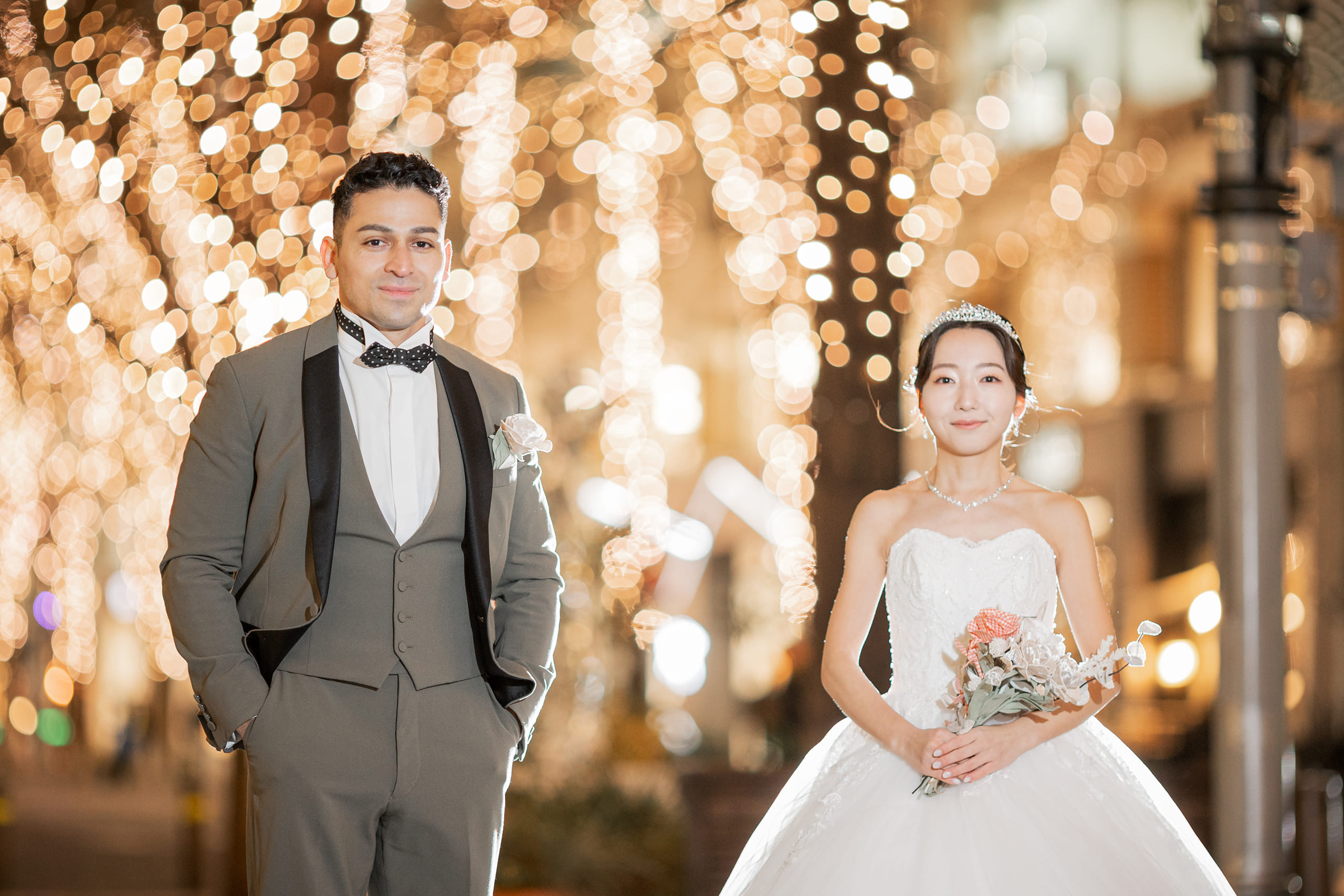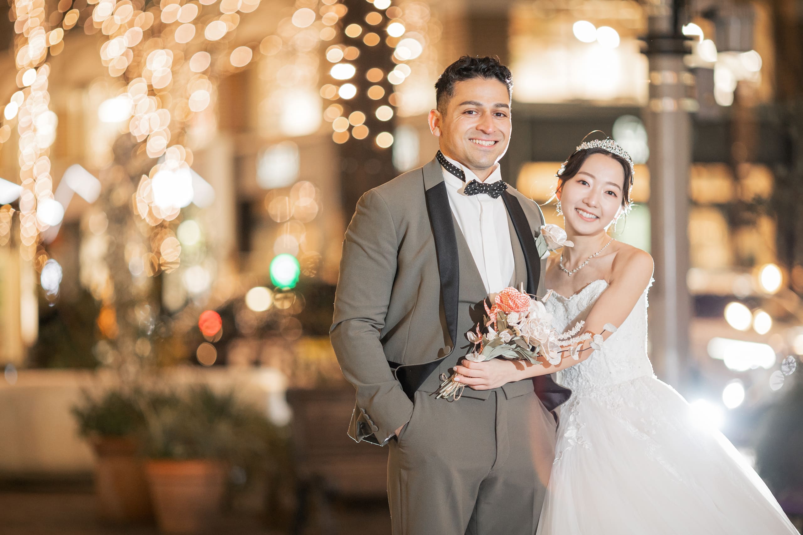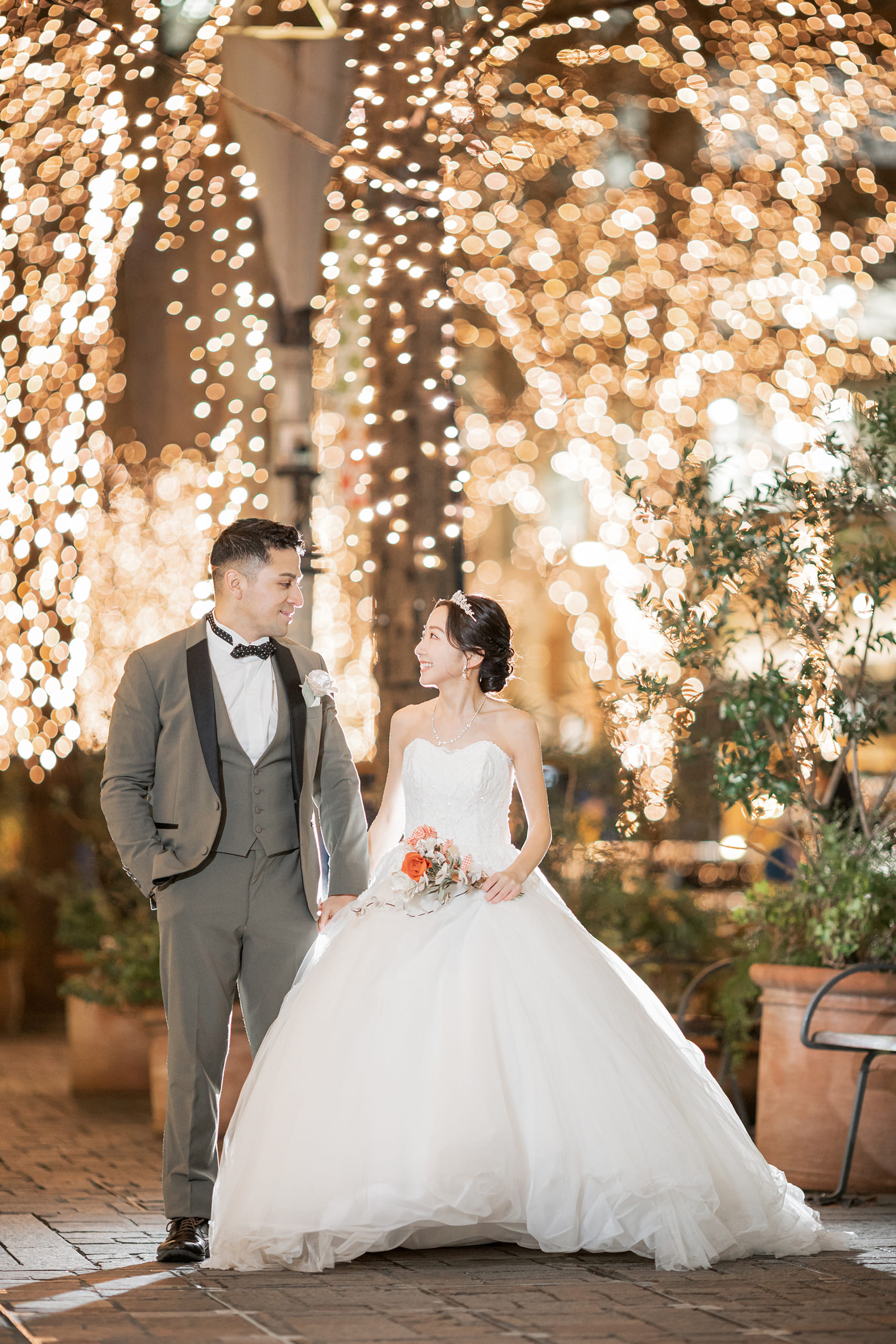 この度は大切な前撮り撮影をお任せいただき、誠にありがとうございました。 また、貴重なご感想をお寄せいただきましたこと、スタッフ一同心より御礼申し上げます。 スタジオ撮影に加え、東京駅やイルミネーションでのロケーション撮影をお楽しみいただけたとのこと、大変嬉しく拝見いたしました。特にイルミネーションのお写真を気に入っていただけたとのお言葉は、私たちにとっても大きな励みでございます。冬ならではの澄んだ空気の中での撮影はとても美しく、素敵なお写真をお届けできましたことを嬉しく思っております。 また、撮影時のポーズやヘアメイクのご希望にもご満足いただけたとのこと、安心いたしました。一方で、ネックレスの位置につきましては細やかな配慮が行き届かず、残念なお気持ちにさせてしまいましたことをお詫び申し上げます。今後はより細かな部分まで確認を徹底し、安心して撮影をお任せいただけるよう努めてまいります。 衣装につきましても、体型やサイズによって選択肢が限られてしまう場合がございますが、その中でご満足いただける一着に出会っていただけたとのこと、私どもも嬉しく思っております。 改めまして、この度は大切な撮影をお任せいただき誠にありがとうございました。 おふたりの末永いお幸せをスタッフ一同、心よりお祈り申し上げます。