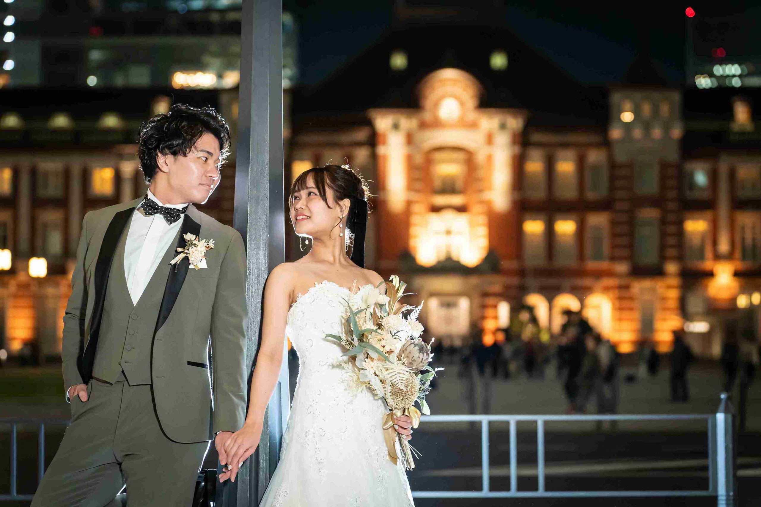 東京駅でのリフレクション加工を含む撮影を大切に考えてくださっていたこと、そして当日のポージングやヘアメイクまでご満足いただけたことは、私たちにとっても大きな喜びです。お二人のご希望にしっかりと寄り添いながら、理想の一枚を残せたこと、本当に光栄に思います。